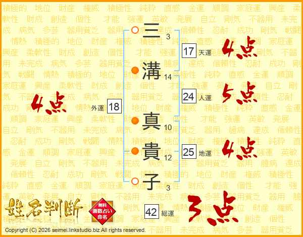 三溝真貴子さんの総運は42画の3点!