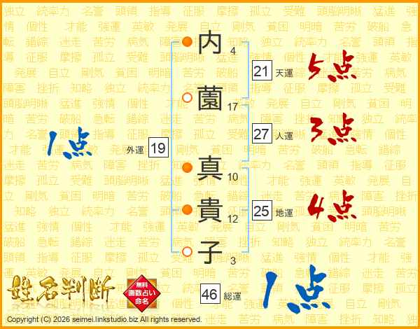 内薗真貴子さんの総運は46画の1点!