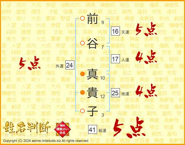 前谷真貴子さんの総運は41画の5点!