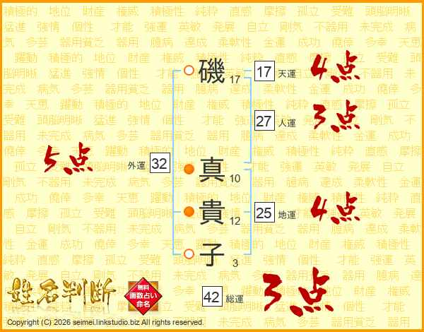 磯真貴子さんの総運は42画の3点!