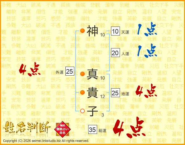 神真貴子さんの外運は25画の4点!