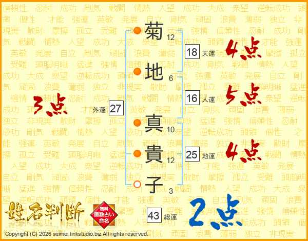 菊地真貴子さんの総運は43画の2点!