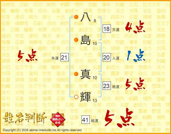 八島真輝さんの総運は41画の5点!