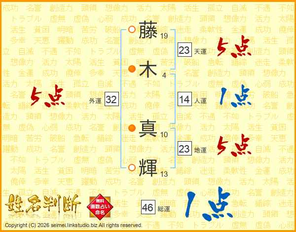 藤木真輝さんの天運は23画の5点!