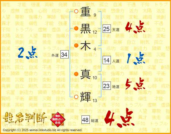 重黒木真輝さんの天運は25画の4点!