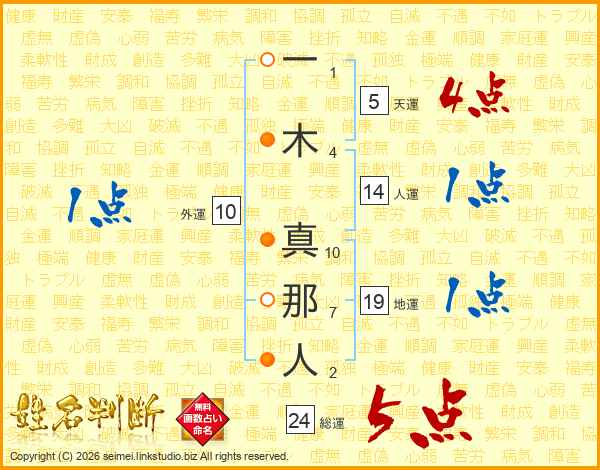 一(1画)木(4画) 真(10画)那(7画)人(2画)