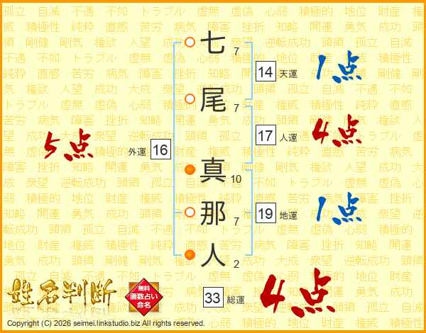 七尾真那人さんの総運は33画の4点!