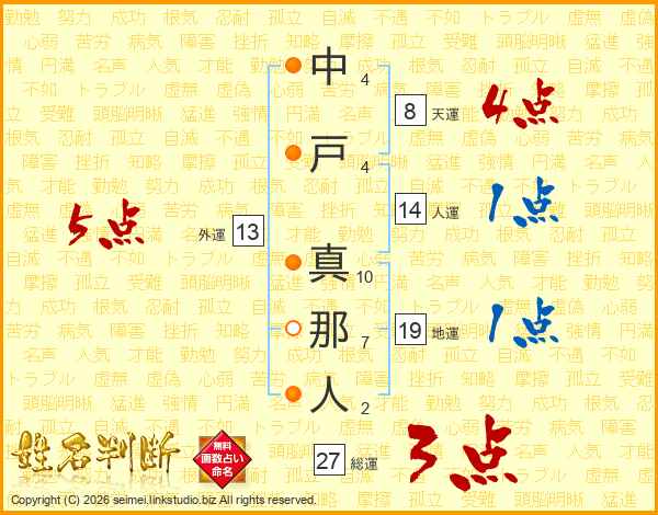 中戸真那人さんの外運は13画の5点!