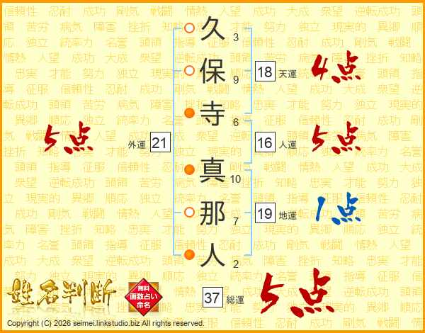 久保寺真那人さんの総運は37画の5点!