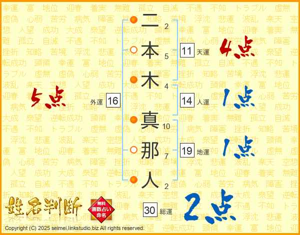 二(2画)本(5画)木(4画) 真(10画)那(7画)人(2画)