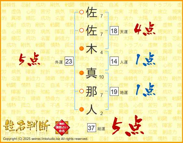 佐(7画)佐(7画)木(4画) 真(10画)那(7画)人(2画)