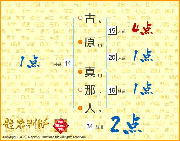 古原真那人さんの人運は20画の1点!