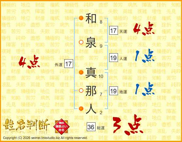 和泉真那人さんの外運は17画の4点!
