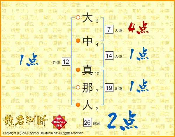大中真那人さんの総運は26画の2点!