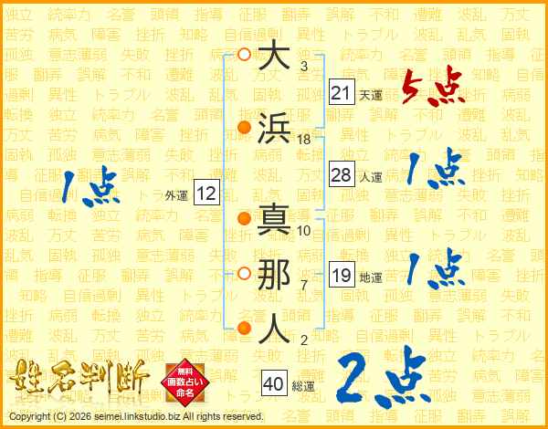 大浜真那人さんの総運は40画の2点!