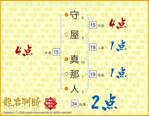 守屋真那人さんの天運は15画の4点!