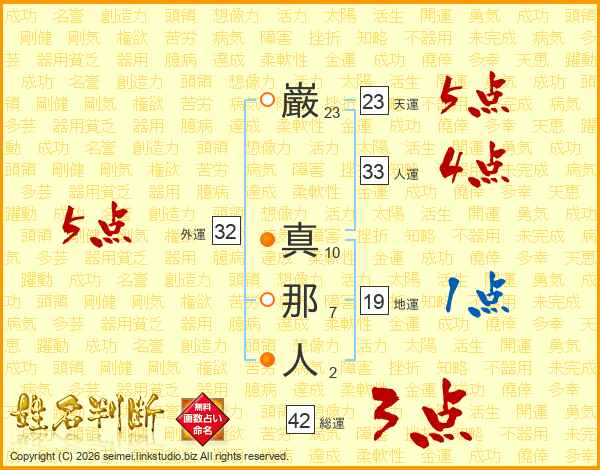 巌真那人さんの総運は42画の3点!