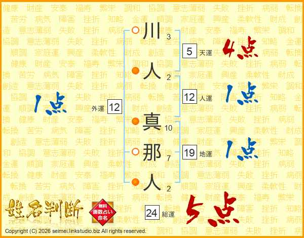 川人真那人さんの天運は5画の4点!