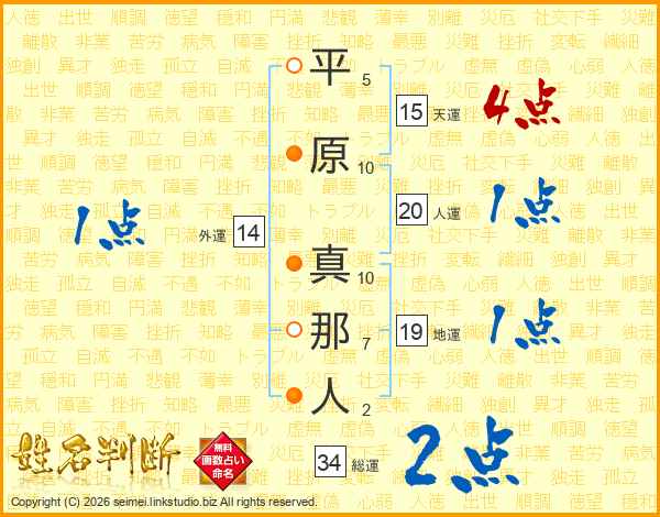 平原真那人さんの外運は14画の1点!