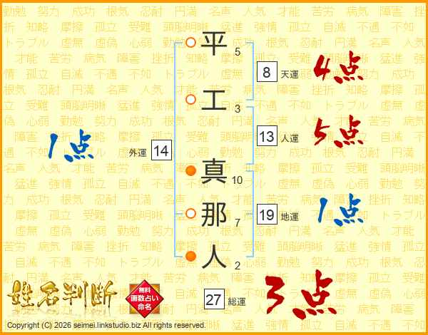 平工真那人さんの人運は13画の5点!