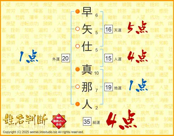 早矢仕真那人さんの総運は35画の4点!