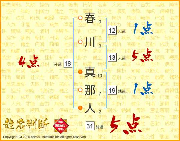 春川真那人さんの総運は31画の5点!
