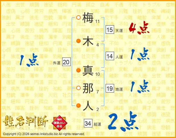 梅木真那人さんの人運は14画の1点!