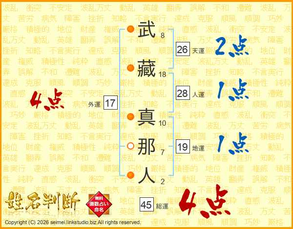 武(8画)藏(18画) 真(10画)那(7画)人(2画)