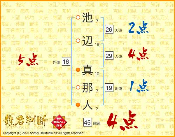 池(7画)辺(19画) 真(10画)那(7画)人(2画)