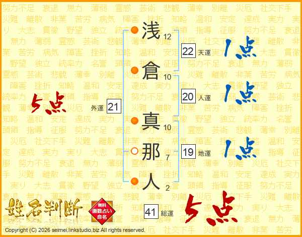浅倉真那人さんの外運は21画の5点!