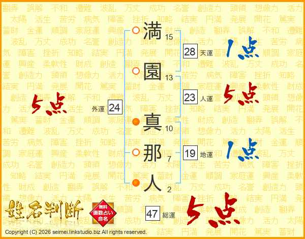 満園真那人さんの総運は47画の5点!