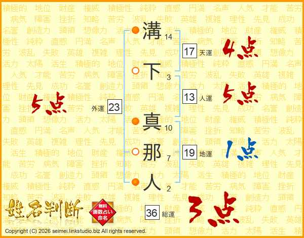 溝下真那人さんの天運は17画の4点!