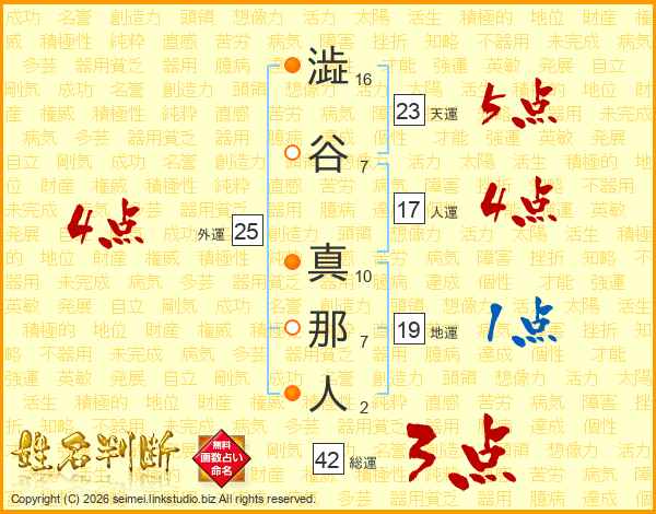 澁(16画)谷(7画) 真(10画)那(7画)人(2画)