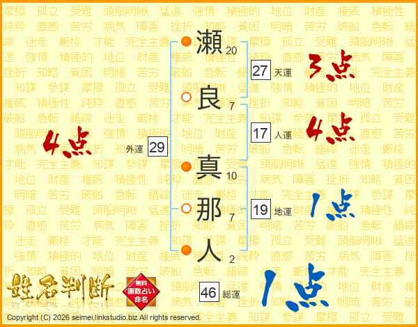 瀬良真那人さんの総運は46画の1点!