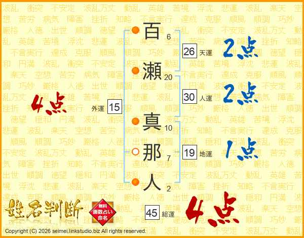 百瀬真那人さんの天運は26画の2点!