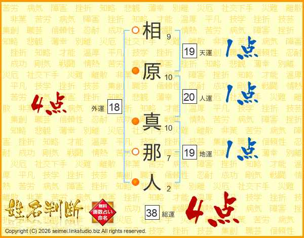 相(9画)原(10画) 真(10画)那(7画)人(2画)