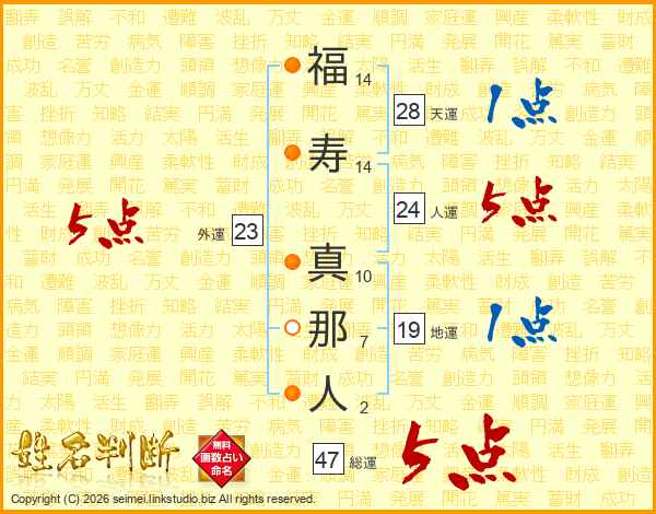 福寿真那人さんの総運は47画の5点!