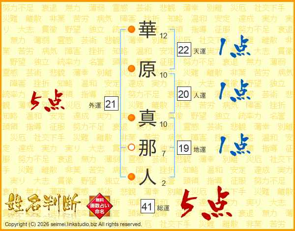 華原真那人さんの総運は41画の5点!