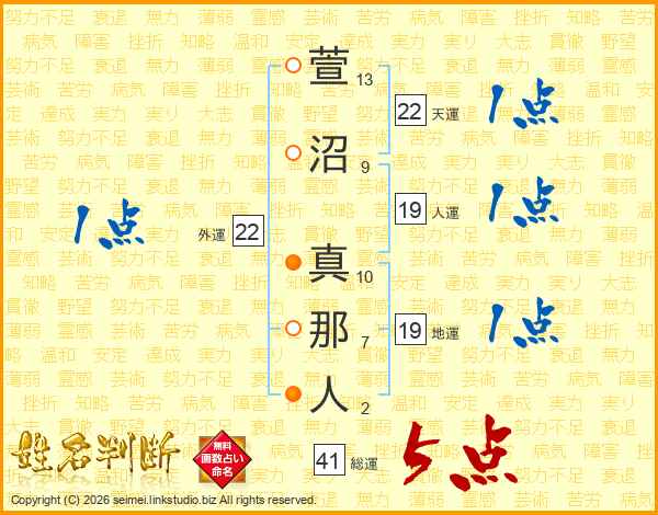 萱沼真那人さんの総運は41画の5点!