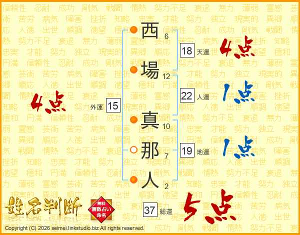 西場真那人さんの総運は37画の5点!