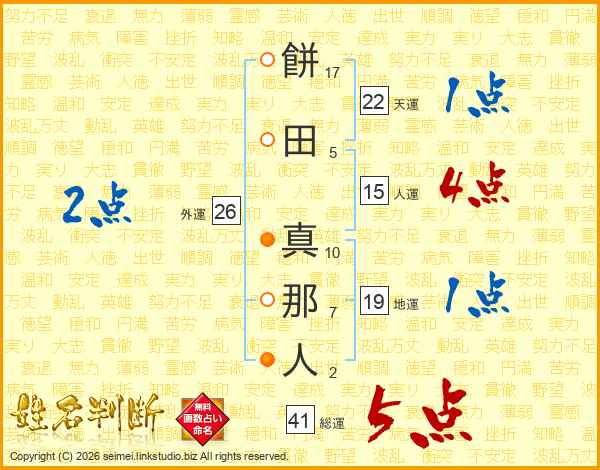餅(17画)田(5画) 真(10画)那(7画)人(2画)