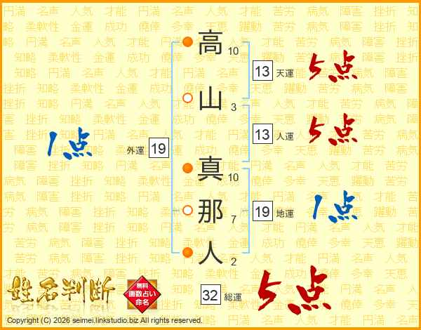 高山真那人さんの人運は13画の5点!