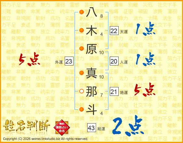 八木原真那斗さんの外運は23画の5点!