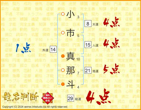 小(3画)市(5画) 真(10画)那(7画)斗(4画)
