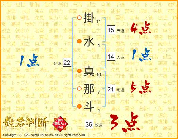 掛水真那斗さんの総運は36画の3点!