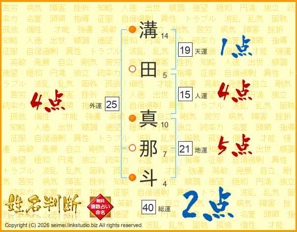 溝田真那斗さんの総運は40画の2点!