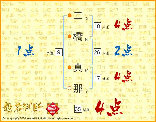 二橋真那さんの総運は35画の4点!