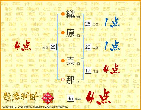 織原真那さんの総運は45画の4点!