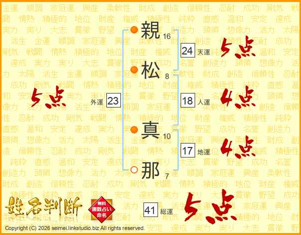 親(16画)松(8画) 真(10画)那(7画)