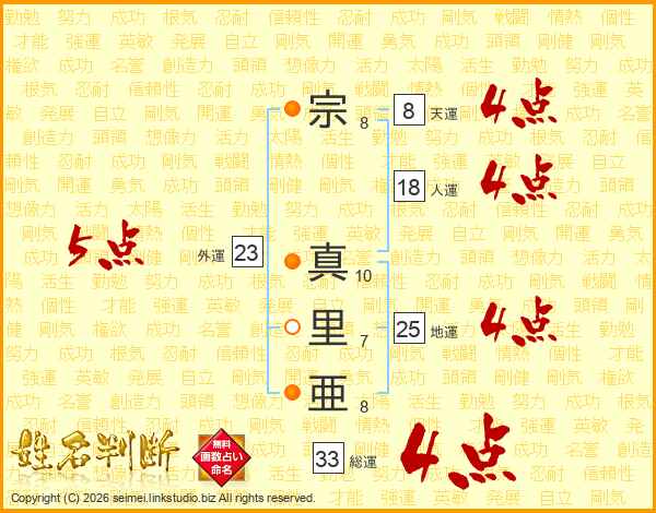 宗真里亜さんの総運は33画の4点!